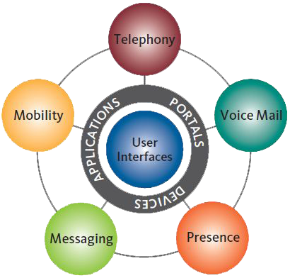 The capabilities of formerly disparate applications will be brought together into unified interfaces where, for instance, users can click to call the sender of an email, move from an instant message to a call or a conference call, or reply to a voice message with voice or text.